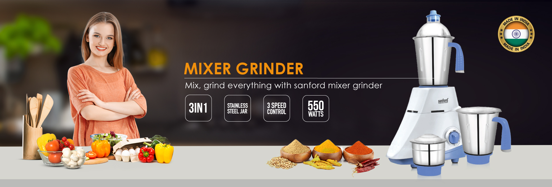 Sanford mixer grinder houses 3 stainless steel jars designed to perfection with superior quality stainless steel body and sparking mirror finish. Its have customized blades for different operations.